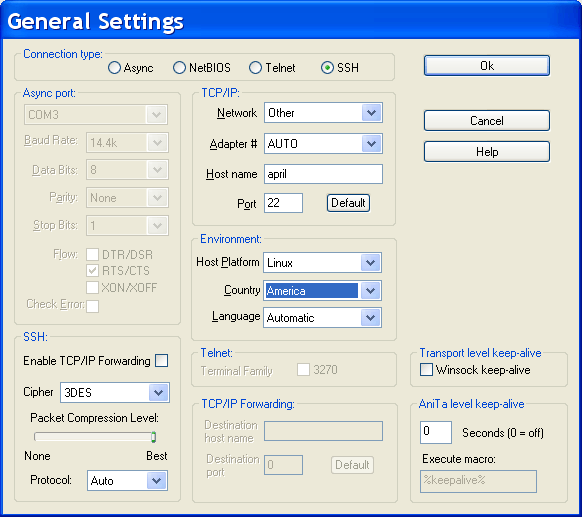 AniTa Telnet Terminal Emulator runs over TCP/IP, NetBIOS and Asynchronous transports.