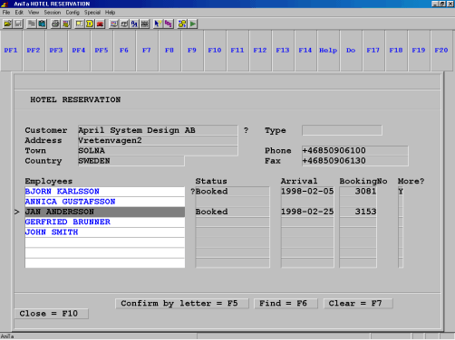 Um terminal geralmente tem uma série de teclas de funções que não são encontradas no PC. AniTa automaticamente programa estas funções na tela como 'hotspots'.